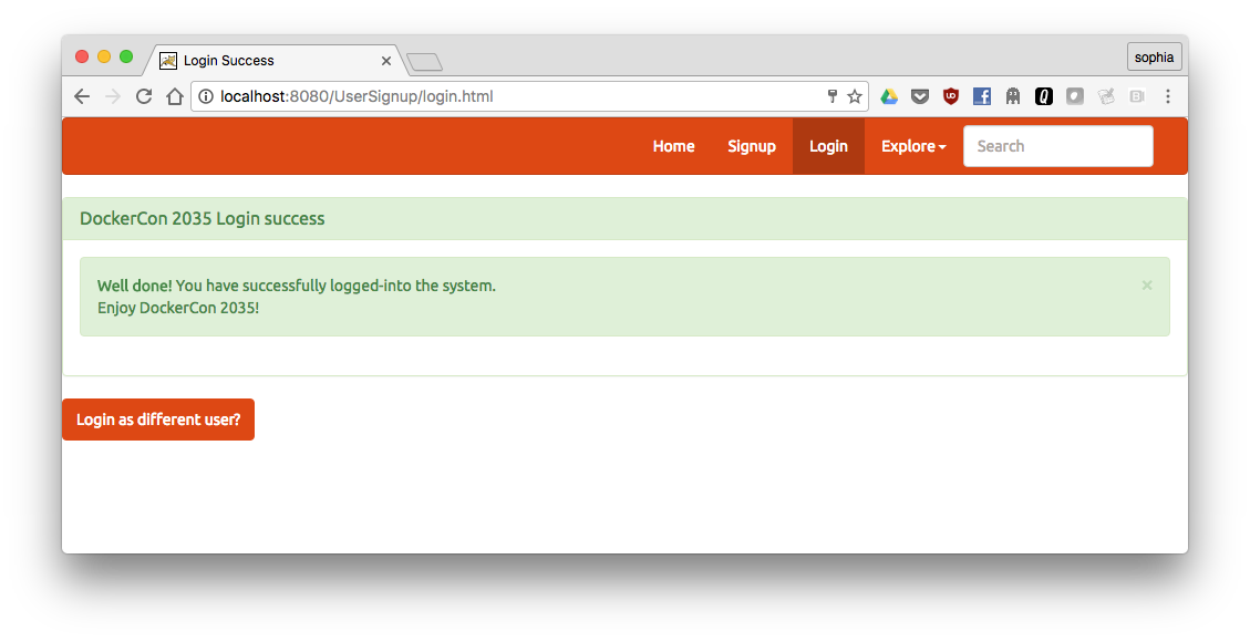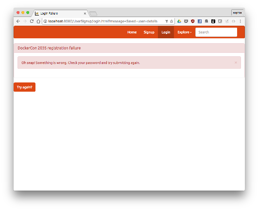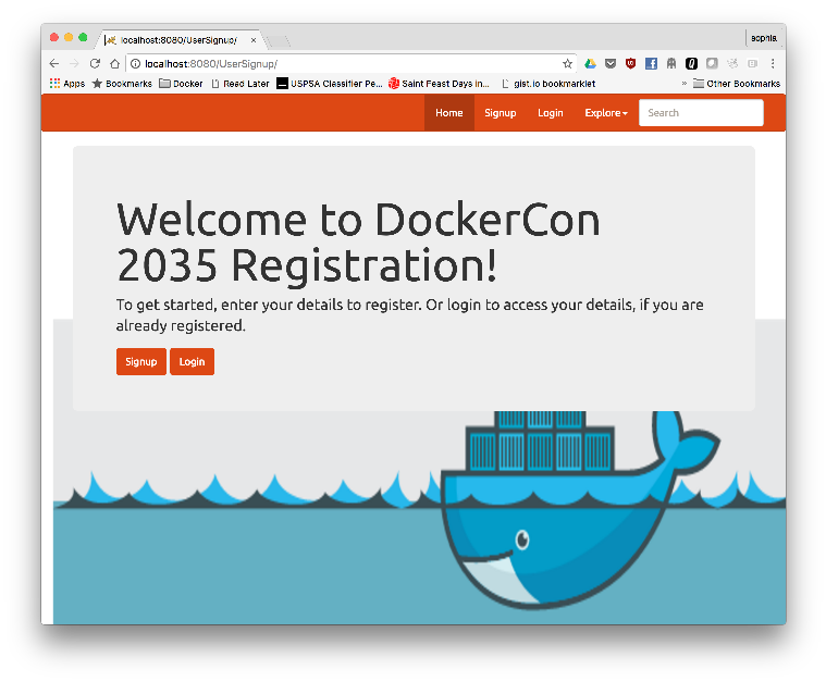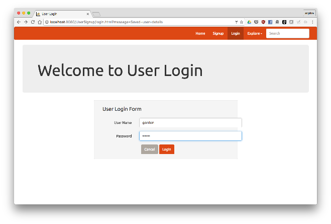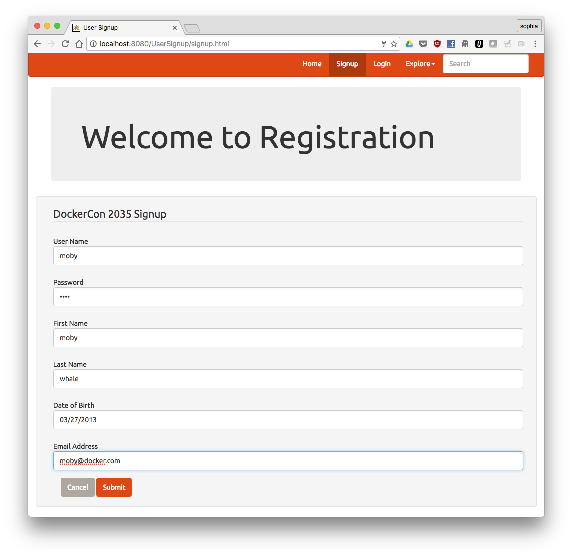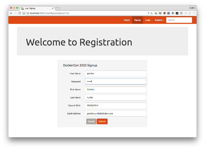 In the application, click on Signup to create a new user. Fill out the registration form and click Submit