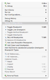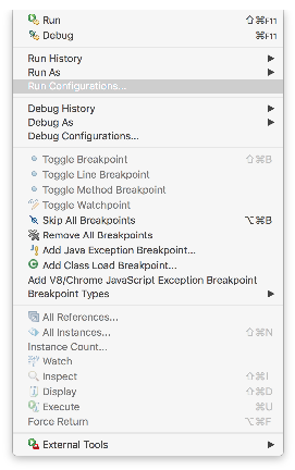 To configure remote debugging in Eclipse, click on Run > Debug Configurations ...
