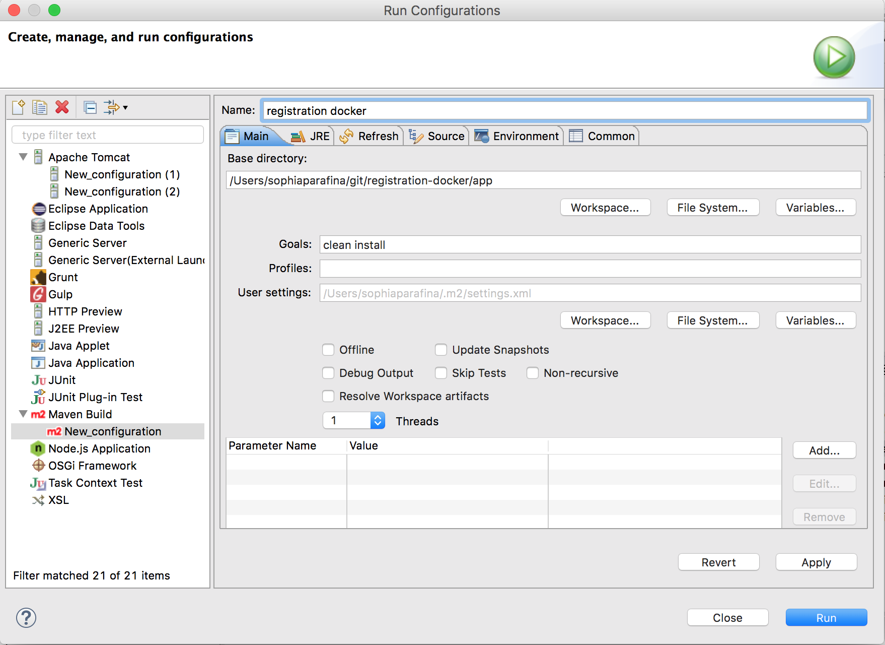 Set the Goals to clean install.