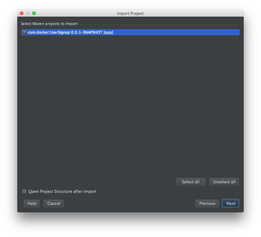 Select the project and click Next