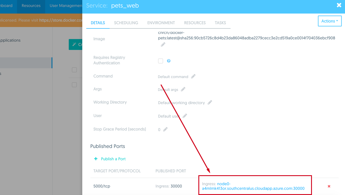 Setup: Configure a wildcard DNS entry *.<yourdomain.com>. You will insert your URL for <yourdomain.com>. You can configure this DNS record to point to a load balancer that balances across multiple UCP nodes. For a simpler configuration, you can also use the IP address of any UCP node as this DNS record.
