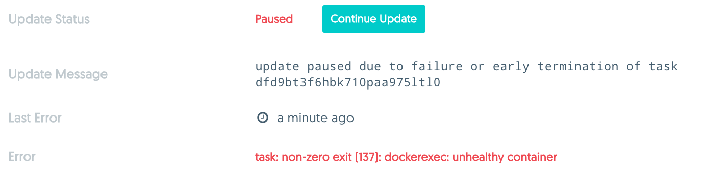 pets_webservice. You will see the status of the update is now paused because of a failed health check.