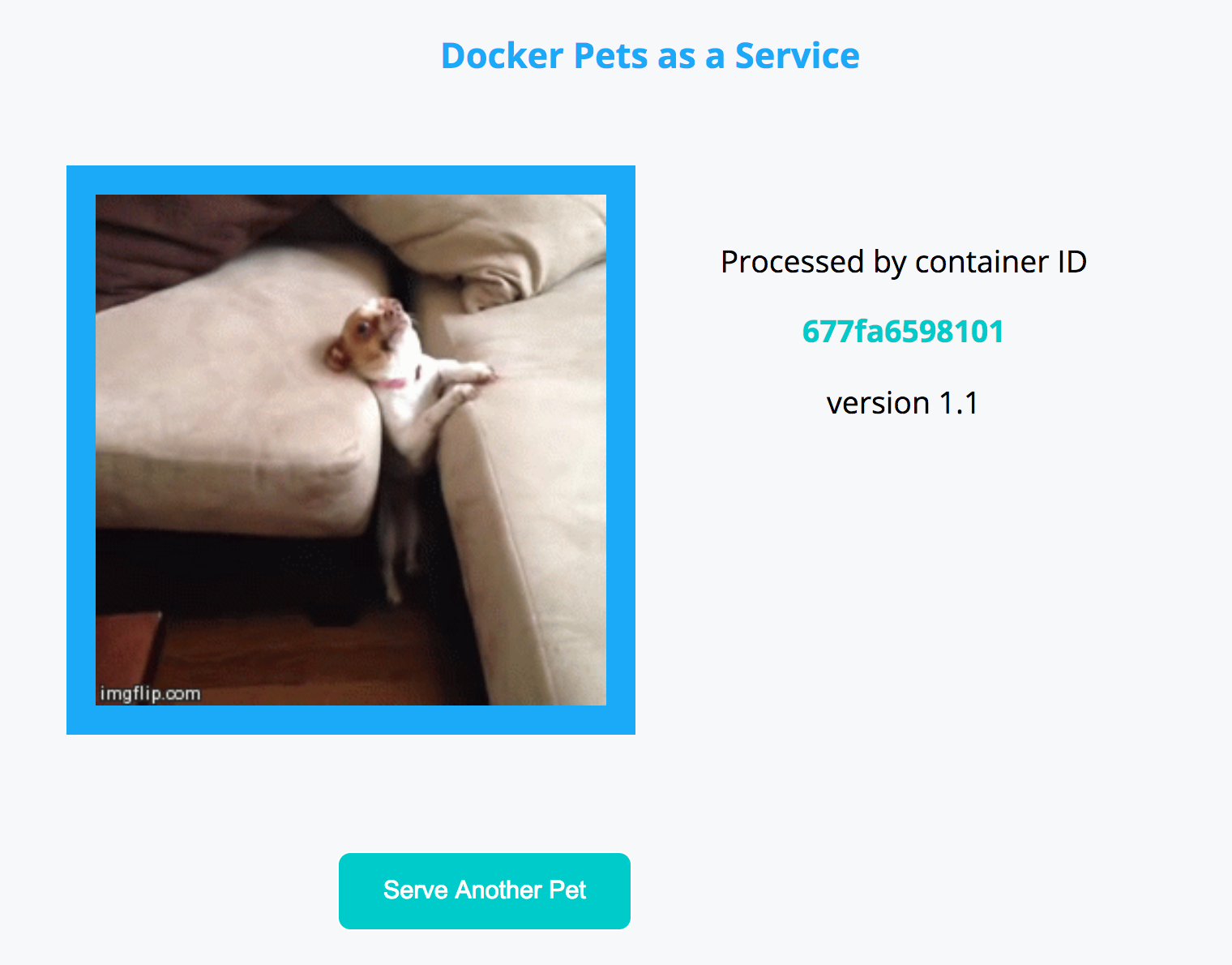 webservice externally published<node1-public-ip>:<port>that maps to the internal port5000. The Docker Pets app is written to take advantage of the stateful backend. Now it gives you the capability to cast a vote for your favorite pet. The vote will be stored by thedbservice along with the number of visits to the application. -