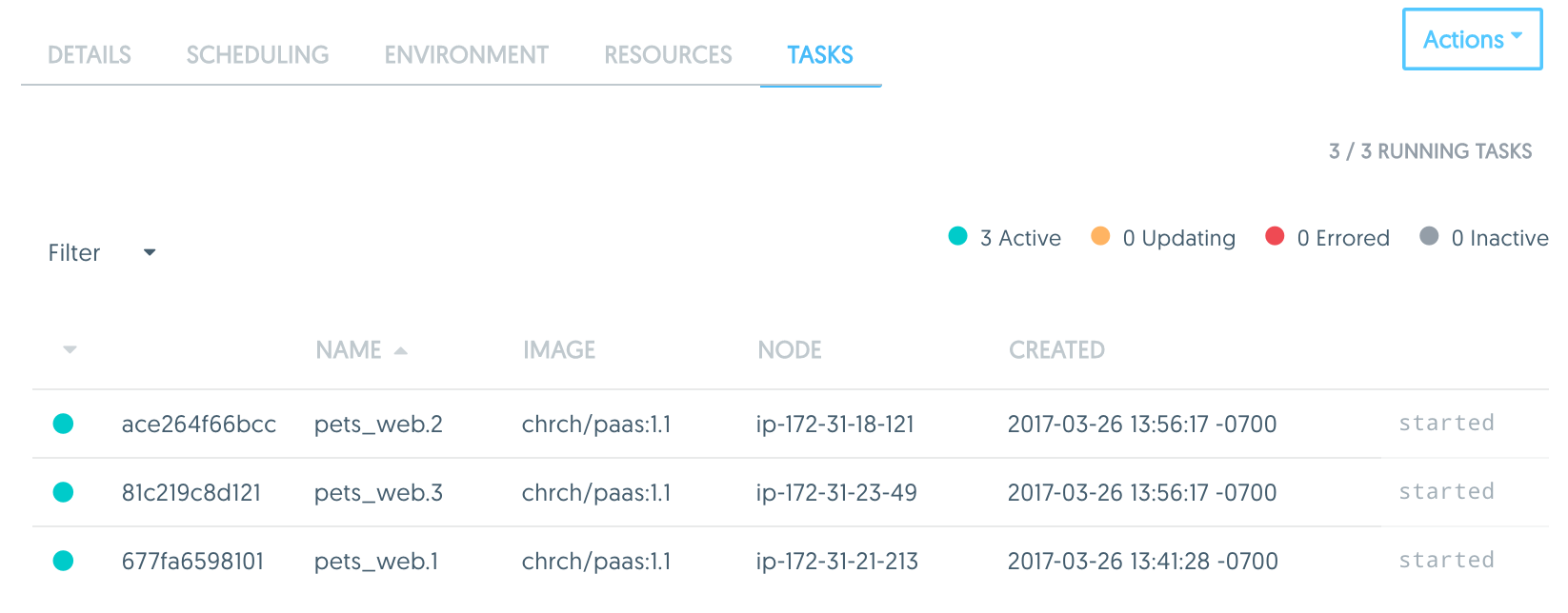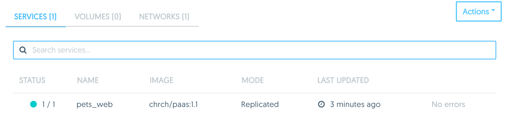 In the following steps we will update the pets_web service with a new image version. We will use a purposely broken image to simulate a bad deployment.