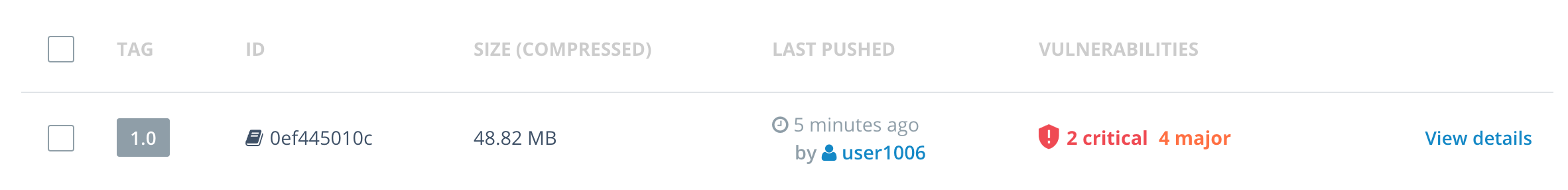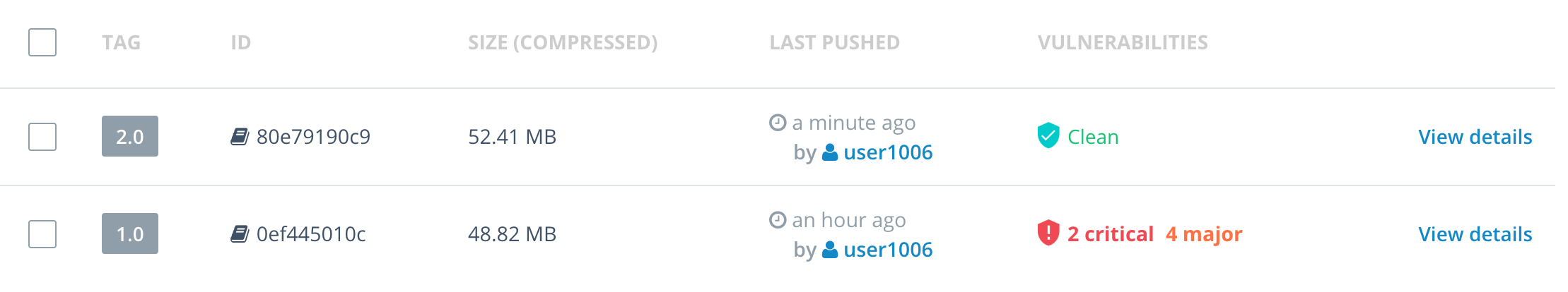 - Go to the DTR UI and wait for the scan to complete. Once the scan has completed DTR will report that the vulnerability no longer exists in this image. The image is now ready for use by the rest of your team!