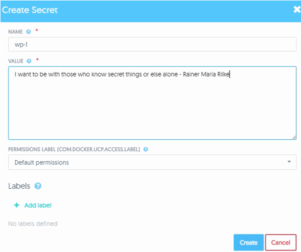 # cat /run/secrets/wp-1 I want to be with those who know secret things or else alone - Rainer Maria Rilke