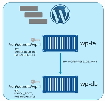 secret mounted to a file called wp-1 in the /run/secrets in-memory